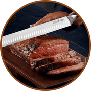 Yhe set has not been used because it is a Christmas present for my wife. However, when I received an electric Pit Boss Pellet Smoker, from her, for my birthday, I purchased a slicing knife and a boning knife which I absolutely love! They make slicing turkey and brisket a breeze. The boning knife is great trimming briskets and cutting up baby backs, for serving. I highly recommend these knives. Quality!