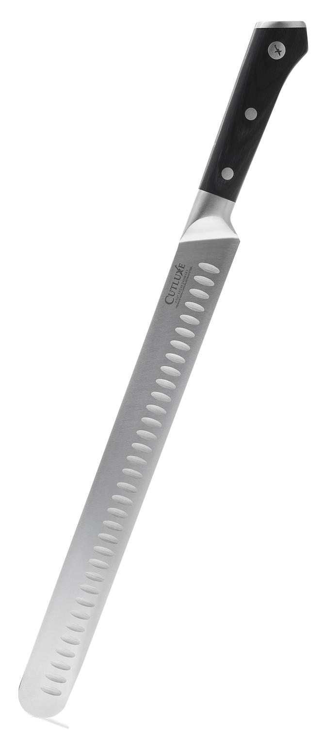The blade of the Cutluxe knife is sharpened by hand at 14 or 16 degrees to give it a perfect edge. This means that in addition to the thin & sleek design, you’ll also have an extremely strong material that can withstand years’ worth of abuse.