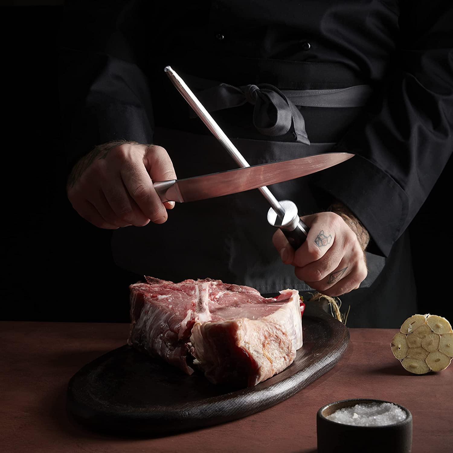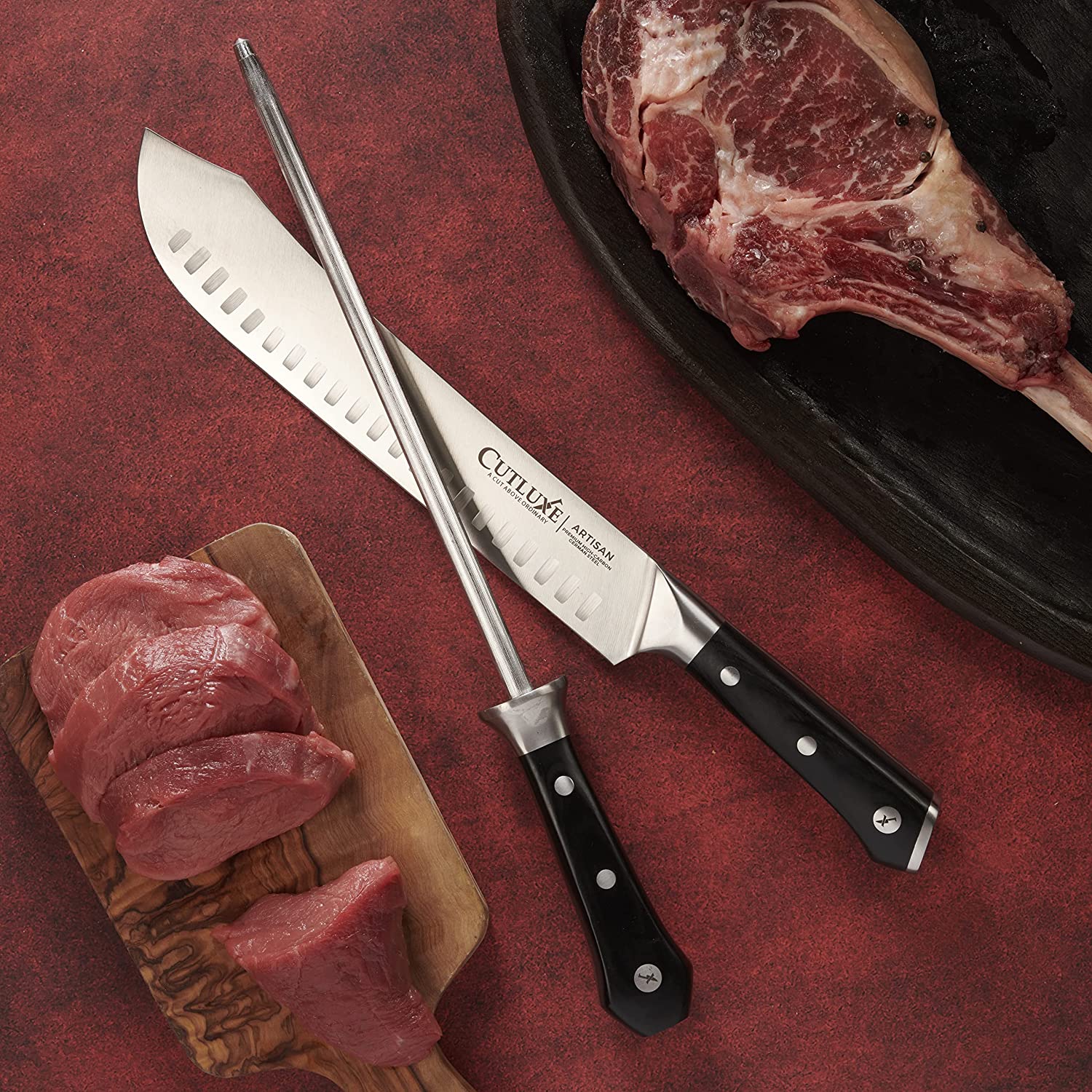The Cutluxe Artisan Series 10-Inch honing rod is used to hone and realign your knife edge quickly and easily. Keep your knives and cutlery in great shape and ensure your blades operate at maximum performance.