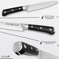 Perfectly engineered multipurpose kitchen knife tapered to a razor-sharp edge for effortless slicing of vegetables, fruits, Sandwich’s and cheeses as well as filleting fish and portioning meat