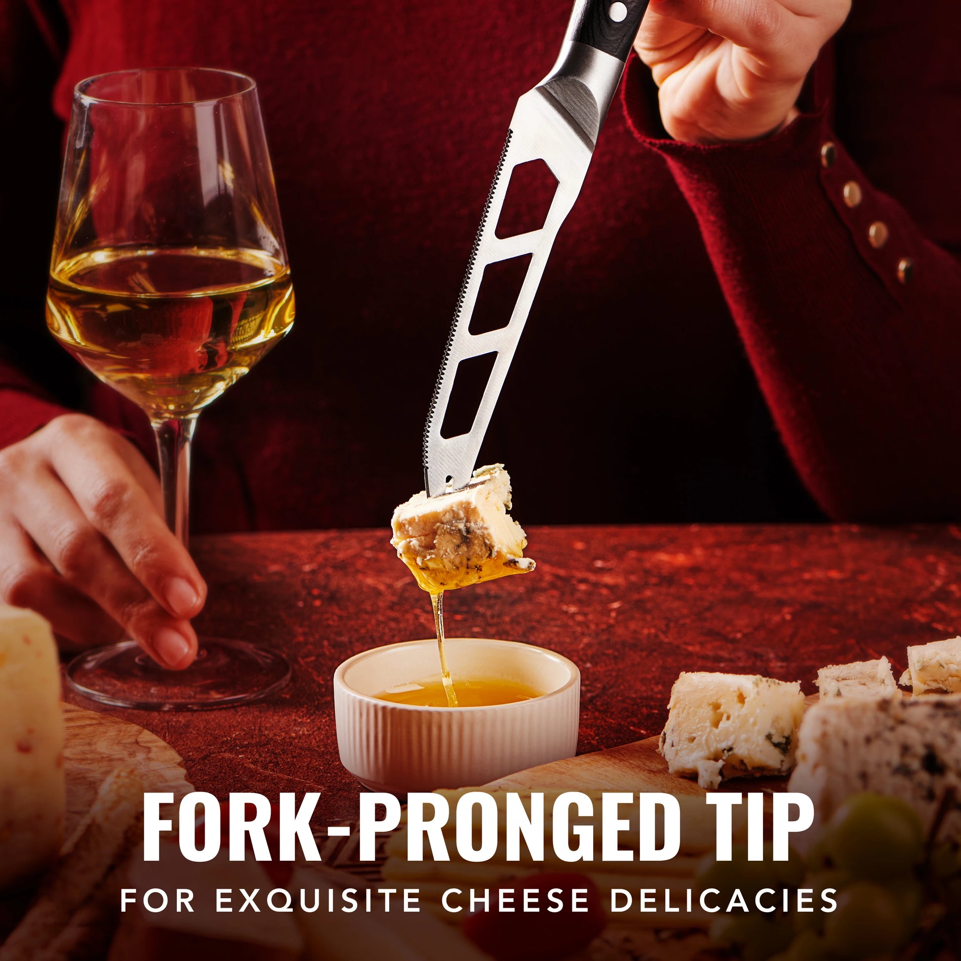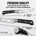 Take your cheese board to the next level with the Cutluxe 5-Piece Cheese Knife Set. This set includes specialized knives for cutting, spreading, and serving all types of cheese – from soft brie to hard parmesan. Made from high-carbon stainless steel with full-tang construction, these knives are designed for precision and durability. The sleek pakkawood handles provide a comfortable grip and a touch of elegance to your spread. Perfect for entertaining or everyday use, this set makes slicing cheese effortless and stylish.